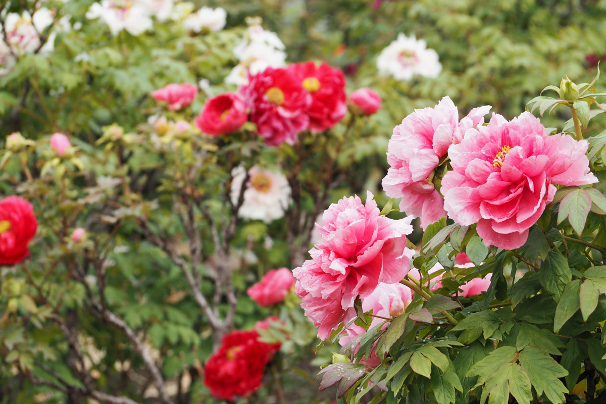 約3500㎡の園内には、1300余株の牡丹を有し、毎年4月中旬頃より、つつじや藤の花と合わせて見事に咲き誇り、園内は華やかな世界へと一変します。