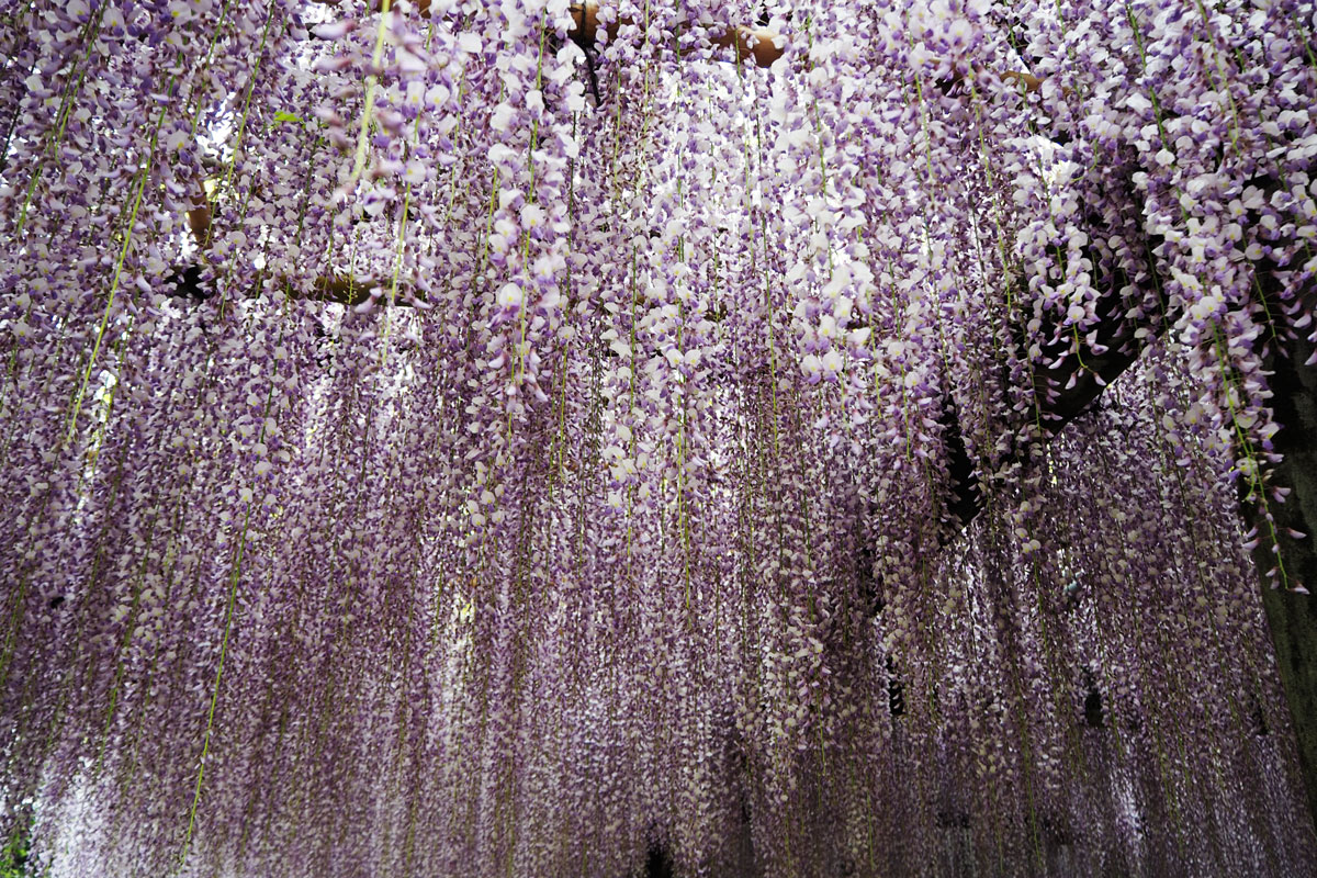 フジの樹は一般に寿命も長いとされていますが、特にこの樹は推定250年以上といわれ延命(ながらへ)のフジと名付けられ毎年ぼたんと美しい紫の花を競います。